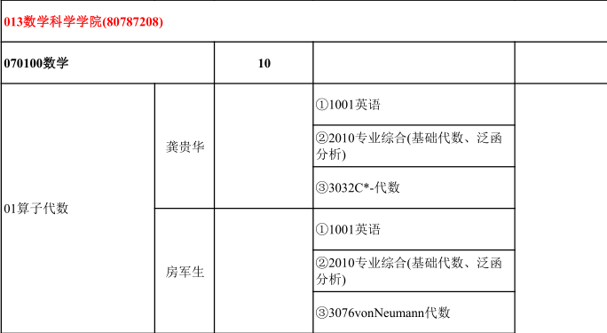2022年数学博士研究生招生专业目录